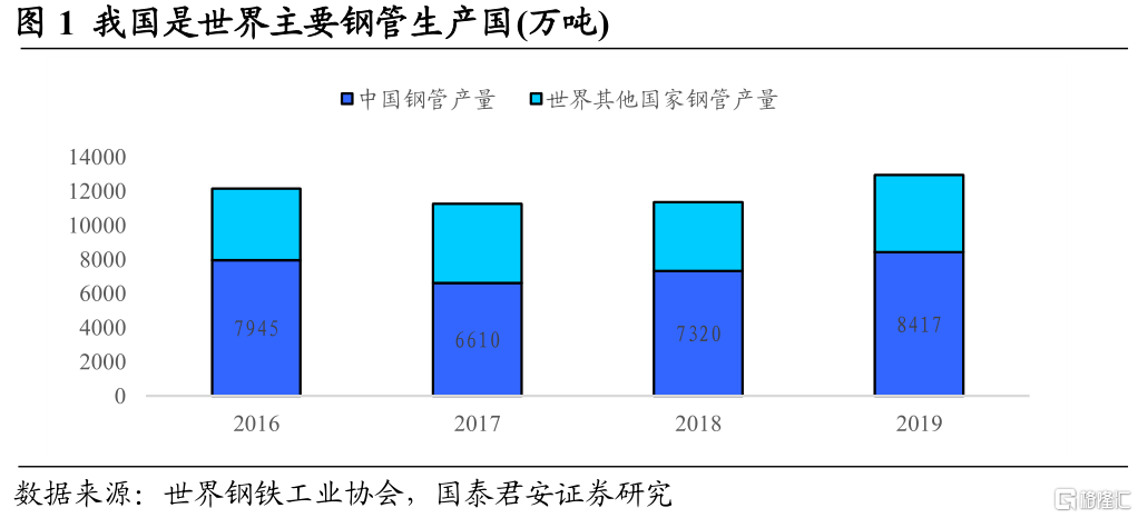 我國是世界主要的鋼管生產國,行業集中度較低。我國是世界鋼管的主要生產國,2019年我國鋼管產量8417萬噸,占世界產量的60%左右。行業供給的周期與基建市政、制造業利潤等密切相關。我國鋼管行業集中度較低,2019年我國鋼管細分品種中鍍鋅管、鋼塑復合管、方矩焊管有一定規模的企業分別為64家、53家、69家,行業整體的分散程度較高。